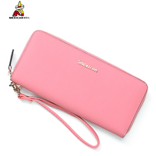 稻草人钱包女长款牛皮欧美时尚新款拉链纯色大容量多卡位手拿钱夹