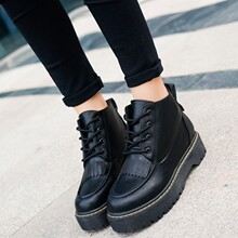 马丁靴女英伦风厚底松糕短靴 学院原宿秋冬季女鞋韩版学生加绒潮