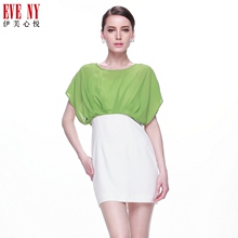 天猫首发伊芙心悦雪纺收腰蝙蝠袖连衣裙207020231067吊牌价1380