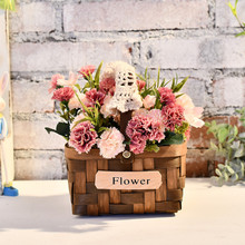 木编织篮桌面花小清新仿真花插花篮创意简约田园花艺摆件花篮