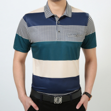夏季新款短袖T恤中老年父亲t恤男短袖条纹半袖大码爸爸装体恤GJG
