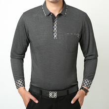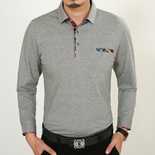 GJG2016春季中年男士长袖男t恤爸爸装长袖T恤衬衫领纯色大码体恤