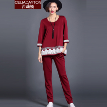 2016秋装新品加肥加大码女装休闲套装胖mm妹妹时尚民族风两件套裤