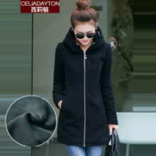 特加肥大码女装加绒秋冬新款胖mm妹妹修身显瘦中长款连帽卫衣外套