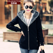 加肥加大码女装2015新款冬装胖mm妹妹加绒加厚卫衣外套保暖开衫潮