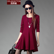 2016秋冬新款大码女装弹力鱼尾蓬蓬裙胖mm修身气质长袖打底连衣裙