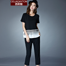 胖妹妹大码女装夏装2016新款两件套女时尚胖mm九分裤休闲套装显瘦