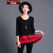 加肥大码女装 2016胖mm妹秋装新款弹力蕾丝衫长袖打底衫 肥婆上衣