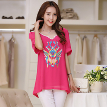 2016新品加大码女装衬衫 胖MM夏装宽松显瘦中长款雪纺衫 t恤衫