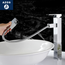 AZOS双孔面盆抽拉式水龙头冷热全铜带花洒升降伸缩阳台洗脸盆龙头