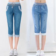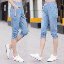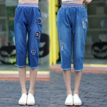 12岁女孩少女夏季牛仔中裤高松紧腰五分裤初中生女休闲七分裤薄款