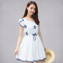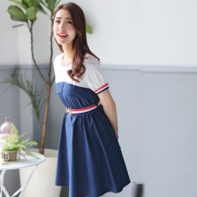 2017夏装新款连衣裙女中长款初中生学院风短袖裙初高中学生连衣裙