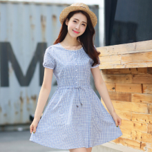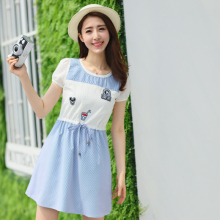2017夏季甜美少女短袖初中生裙韩版中长款初中学生女修身连衣裙潮