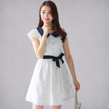 2017韩版少女初中生娃娃领连衣裙中学生夏季短袖中长款学生裙子女