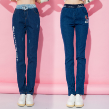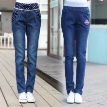 2017青少年女装春装裤子初高中女学生少女春季牛仔裤松紧高腰女