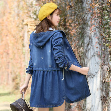 2017新款韩版修身少女春装中学生风衣女中长款学院风牛仔长袖外套