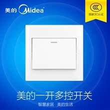 美的墙壁开关86型一开多控电源带荧光雅白单开按钮面板家用暗装