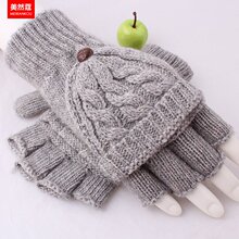手套男女冬情侣韩版保暖针织兔羊毛学生写打字可爱露半指翻盖手套