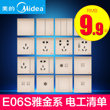 Midea/美的 86型家用开关面板 单双联墙壁电源插座E06S香槟金