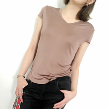 清爽好穿!怎么搭都时尚~丝滑双V领短袖T恤女夏宽松真丝弹力上衣