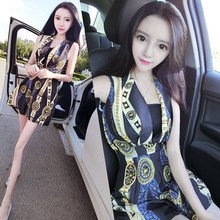 2017夏装新款女装韩版时尚夜店性感V领修身无袖两件套包臀连衣裙