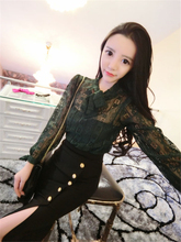 2017夏装新款女装韩版时尚夜店性感灯笼袖衬衣修身蕾丝套装连衣裙