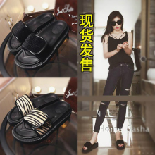 2017夏季新款宝小姐同款松糕厚底一字黑色马毛魔术贴女凉拖鞋潮女