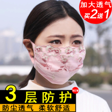 夏季新款防晒防紫外线透气薄款蕾丝口罩防尘骑行棉加大抗UV口罩