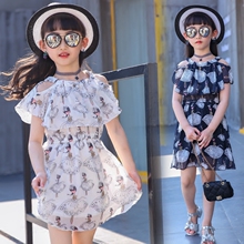 女童连衣裙夏季新款雪纺短袖童装吊带裙子夏装露肩韩版儿童沙滩裙