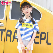 2017夏季新款女童短袖套装学院风短袖T恤+条纹裙裤两件套女孩衣服
