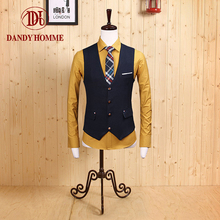 dandyhomme春季男装男款英伦商务休闲 西装马甲男韩版修身 平驳领