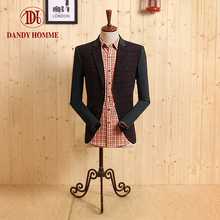 【买2送1】男士毛呢西服韩版修身小西装 秋装便西拼色休闲外套潮