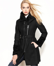 2013 美国休闲G家官网画册款 人造羊羔皮领不对称拉链羊毛大衣