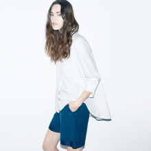 2015 意大利S家春夏新品 女士大圆摆七分袖府绸衬衫 must buy