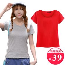 纯棉短袖t恤女棉t宽松纯色白色休闲半袖显瘦大码女士上衣定制DIY