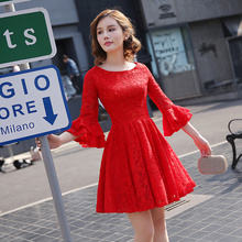 伴娘服短款2017新款时尚粉色蕾丝小礼服姐妹连衣裙礼服女宴会修身