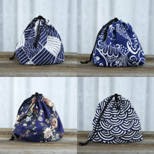 日式和风便当袋 棉麻布袋 便携束口饭盒布袋布套餐具保鲜盒袋子