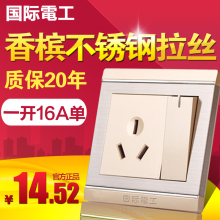 国际电工开关插座面板香槟金开关带空调插座 一开三孔单控16A空调