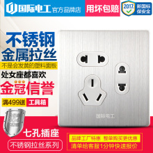 国际电工开关插座面板86型不锈钢拉丝墙壁电源 7七孔二二三插座