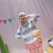 甜心轰炸机 自制 连帽少女婴儿蓝拼接条纹毛衣针织衫宽松