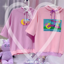 草莓包大魔王 泡泡糖月亮neon moon套头连帽短袖卫衣