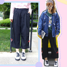 【阿猫】日本复古古着风制服蝴蝶结百搭宽松两色学生西裤阔腿裤
