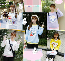 misscat独家日本复古着软妹少女姆明亚美童趣拼色软妹风加绒卫衣
