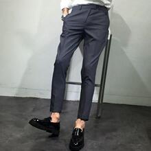 花臂2017春夏新款纯色简约修身小脚休闲裤男九分西裤黑灰色九分裤