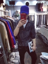 英伦潮男修身短袖衬衣春夏条纹韩版男士衬衫百搭短袖发型师寸衫