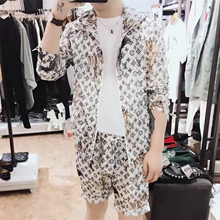 户外防晒衣套装短裤 男皮肤衣薄款宽松连帽防晒服 夏透气情侣潮男