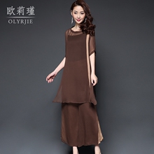民族风女装2017新款品牌真丝连衣裙两件套桑蚕丝印花长裙显瘦宽松