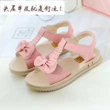 百尚百酷童鞋女童凉鞋新款沙滩鞋真皮儿童2017夏季蝴蝶结公主凉鞋