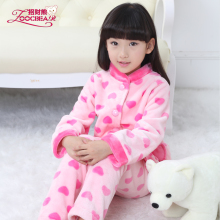 招财熊女童居家服套装2016冬装新款童装加厚夹棉珊瑚绒睡衣两件套