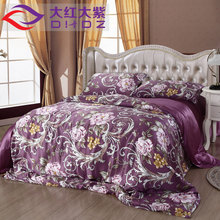 大红大紫真丝四件套 100%桑蚕丝印花提花 正品丝绸床上用品特价